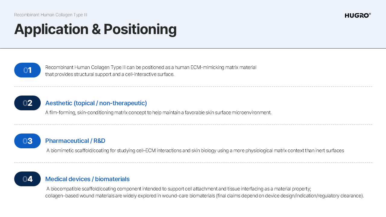 | Description | Steriled, Vial, Mimicking human dermal matrix (Collagen 90%, Elastin 10%) |